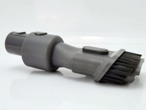 De doos bevat ook twee andere soorten borstels, waarvan er een perfect is voor het stofzuigen van stoelen met zijn kleine borstel en fijnere punt. De andere is ontworpen om moeilijk bereikbare plaatsen te bereiken, zoals tussen de kussens van een fauteuil om kruimels te verzamelen. Er is ook een verlengmondstuk verkrijgbaar waarmee de borstel in een andere richting kan worden gericht. Muurbeugel