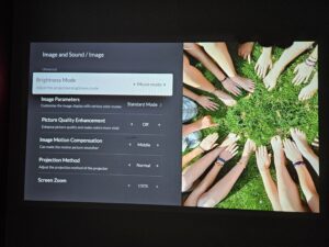 Fengmi OS biedt iets minder dan 10 verschillende beeldmodi, elk met zijn eigen instellingen, waarbij sommige een heel koud beeld opleveren en andere juist het tegenovergestelde. Ik heb de colorimetrie van elke modus gemeten en kom hier later in de test op terug. Er is ook een aangepaste modus waarin je elementen zoals helderheid, contrast, verzadiging, tint, scherpte en kleurtemperatuur zelf kunt beïnvloeden. Er is een 'game'-modus die in principe een betere ervaring zou moeten bieden voor gamers (console of PC), maar je moet ervoor zorgen dat de keystone-correctie is uitgeschakeld omdat dit de reactietijd van de projector negatief zou beïnvloeden.
