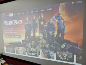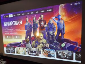 Aangezien de rest van de interface en de inhoud in het Chinees zijn, is dit weinig interessant voor een gebruiker buiten China. Je moet dus een externe oplossing gebruiken met deze projector, zoals een Google Chromecast TV of een Nvidia Shield (ik heb deze twee oplossingen gebruikt om de projector te testen).