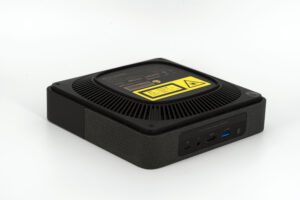 Aan de voorkant vinden we het optische compartiment, dat een DMD 0.23 chip verbergt zoals de XGIMI Mogo 2 Pro, maar met de toevoeging van een laserbron in plaats van LED's voor de XGIMI. Deze DMD-chip heeft een resolutie van 1280 × 720, dus het is niet echt een full HD-projector, maar Formovie (en andere fabrikanten) bereiken een full HD-resolutie door verschillende beelden heel snel te combineren. Het eindresultaat is een full HD-beeld van goede kwaliteit, zolang je geen te groot beeld projecteert. Ik kom hier later in de review nog op terug.