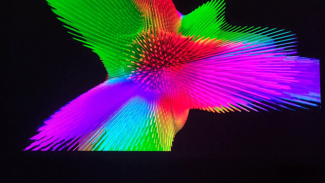 Ik heb nog nooit een driekleurenlaserprojector getest, maar merkte iets bijzonders op aan de contouren. Elke keer zie ik een lichte groene en rode halo rond de contrasterende gebieden zoals de onderstaande balken. Dit heeft ook invloed op de tekst die op het scherm wordt weergegeven.