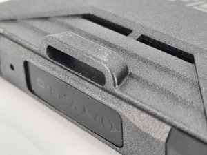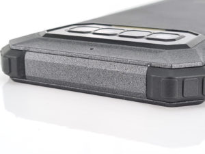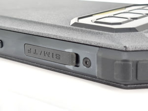De sim-lade wordt beschermd door een rubberen strip, deze strip is gemakkelijk te verwijderen maar aan de andere kant moet je een naald gebruiken om de sim-lade los te maken en deze naald is voorzien van een haak waarmee je de simlade eruit kunt trekken omdat deze er niet gemakkelijk uit komt. De simlade biedt plaats aan 2 simkaarten en een geheugenkaart tot 256 Gb. Onder de simlade bevindt zich de gebruikelijke configureerbare knop die u kunt koppelen aan de functionaliteit van uw keuze (vb: zaklamp, camera, ...). De Oukitel iiiF150 B2021 gaat dus geen schoonheidswedstrijd winnen, daar gaat het sowieso niet om. Het is ontworpen om schokken en water te weerstaan, het probeert zich er niet voor te verbergen om een groter publiek aan te spreken. Het is niet erg prettig om aan te raken, maar dit wat ruwe oppervlak zou moeten voorkomen dat je het te vaak moet schoonmaken.