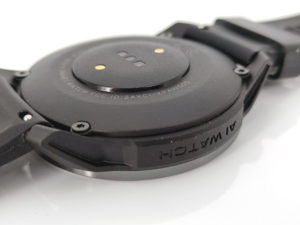 Op de achterkant vinden we de gebruikelijke sensoren, ik heb geen informatie over het type sensor dat wordt gebruikt, ik kan het niet vergelijken met de andere horloges die ik heb getest. Over het algemeen is het afwerkingsniveau redelijk correct, het ontwerp is vrij klassiek en maakt dit horloge aantoonbaar betaalbaarder voor een breder publiek waar andere merken horloges op de markt hebben gebracht met een meer verdeeldheid zaaiend ontwerp dat misschien niet een beroep doen op iedereen.