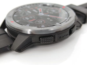 De knopen aan de zijkant zijn breed en plat, zodat ze niet blijven haken in de stof van je kleding of druk uitoefenen op de huid als je je pols buigt. De bovenste knop geeft toegang tot de belangrijkste functies van het horloge, de onderste knop geeft toegang tot sportmodi.